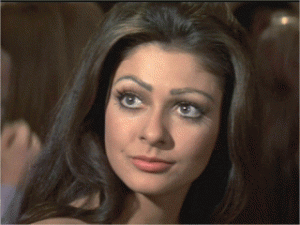At age eighteen, Cynthia Myers, a 5-feet-4 dark-haired beauty with a tantalizing figure measuring 39-24-36, became Playboy’s final Playmate of 1968. As Miss December, she graced the cover as a Christmas tree come to life (bet Santa never had it so good) and posed nude kneeling on a white rug alongside a teddy bear. She immediately became one of the most popular pin-ups for the GIs stationed over in Vietnam and the magazine received the second largest amount of fan letters regarding her centerfold. Strangely, she failed to be selected Playmate of the Year. That honor went to Connie Kreski. Instead, movies beckoned and Myers played a bit role as one of the marathon dancers in the depression-era drama They Shoot Horses, Don’t They? (1969) starring Jane Fonda and Michael Sarrazin. She also made appearances as herself along side Hugh Hefner in his syndicated variety series, Playboy After Dark in 1969.