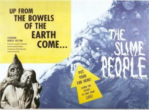 “A man Tracey Putnam played the doctor in this,” continued Hart. “He was an actual doctor and had discovered a drug which keeps Epileptics from going into seizures. His stepson, Jock Putnam, played one of the Slime People and talked his stepfather into playing one of these roles. It was a riot to see Jock and the other actor who played the Slime People sitting on the set smoking a cigarette. You’d see smoke pouring out of all of the orifices of these gigantic costumes.”