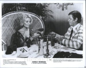 “Jerry was just lovely to work with. But to be honest it was a little confusing. Because he wore so many hats on Hardly Working—actor, director and co-writer—it was hard for me to get my character in tune with the right person. First you’re listening to Jerry the intellectual analyzing the scene and speaking with the cameraman and the rest of the crew. And then all of a sudden he’s this lunatic. It was quite an experience. I think it is very difficult for an actor to direct himself. I know it’s done all the time and sometimes extremely successfully but it’s hard. Jerry’s health also wasn’t very good at the time.”