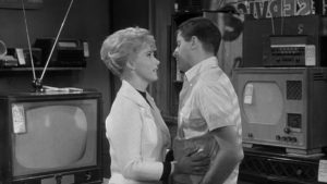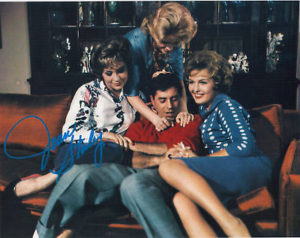 “Jerry Lewis was totally off the wall and we had a lot of fun working on this film [It’s Only Money, 1962]. He had me laughing so hard and so long during some scenes we had to stop and start over. We wasted a lot of time and money just cutting up and laughing. He was such a practical joker and had all of us including our director, Frank Tashlin, in stitches. You never knew what Jerry was going to do next. You could play the same scene with him ten times and it wouldn’t come out the same way twice. But Jerry could be serious also. He was very generous and gave me a book that I still have called You’re Better Than You Think. Inside he inscribed, ‘and you really are Joannie.’ I was going through a period of time with a bad marriage and feeling down and depressed. I was unhappy about a lot of things. Jerry really set my head straight…”